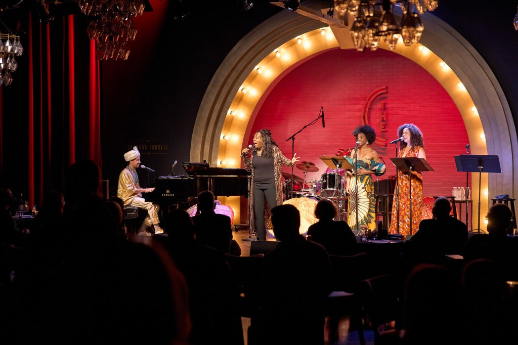 Three supporting singers (Freida Williams, Lori Tishfield, Kimberly Marable) launched the show by weaving their way through the audience, gloriously dressed and with parasols at full mast, setting the tone for De Shields’ arrival from the back of the house.