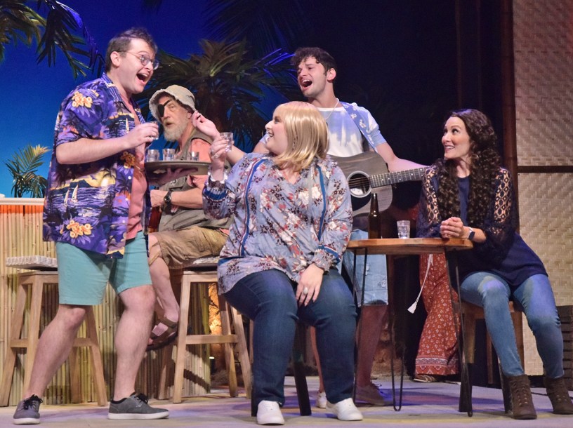 – Speaking of attraction, “Escape to Margaritaville” is probably the most sex-positive show that’s been offered on the B&B stage since the last time they tackled “The Best Little Whorehouse in Texas.” I thought some punches – or punchlines – might be pulled but the production presented the show as is, pious potential patrons be damned. (Nobody seemed to mind too much, even those who brought young kids to the show. Musicals with a smile will often dismantle such concerns.)