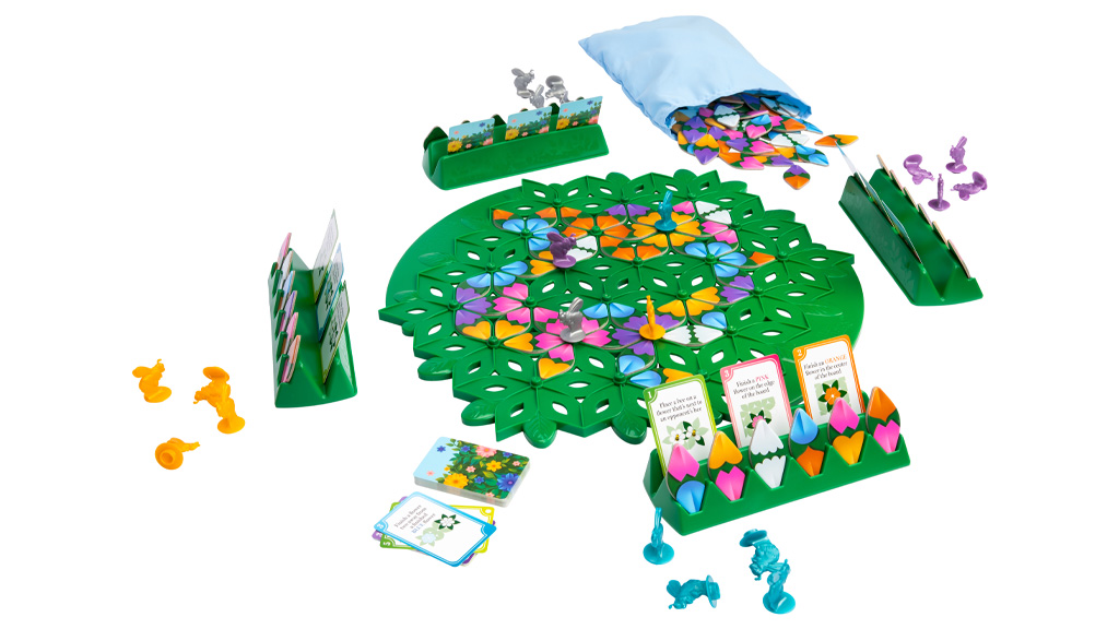 Table presence is certainly a plus with this addition to the current harvest of nature-focused games — a theme that seems to now rival dungeon crawls and superheros in the hobby game world. The rules are simple here. You can play 1-3 pedals from your rack with each tile touching another tile and petal colors needing to match. Park one of your five bumblebees on a tile to claim it and, when it is complete, score points. You also score points for completing secret objective garden cards (i.e. Finish a flower next to a finished blue flower). And that’s pretty much it. The game ends when a player has five bumblebees on finished flowers. There’s nothing bold or original here and variety isn’t in its bouquet, but Wild Flowers is a smartly produced, lightly strategic gateway game that delivers what it promises.