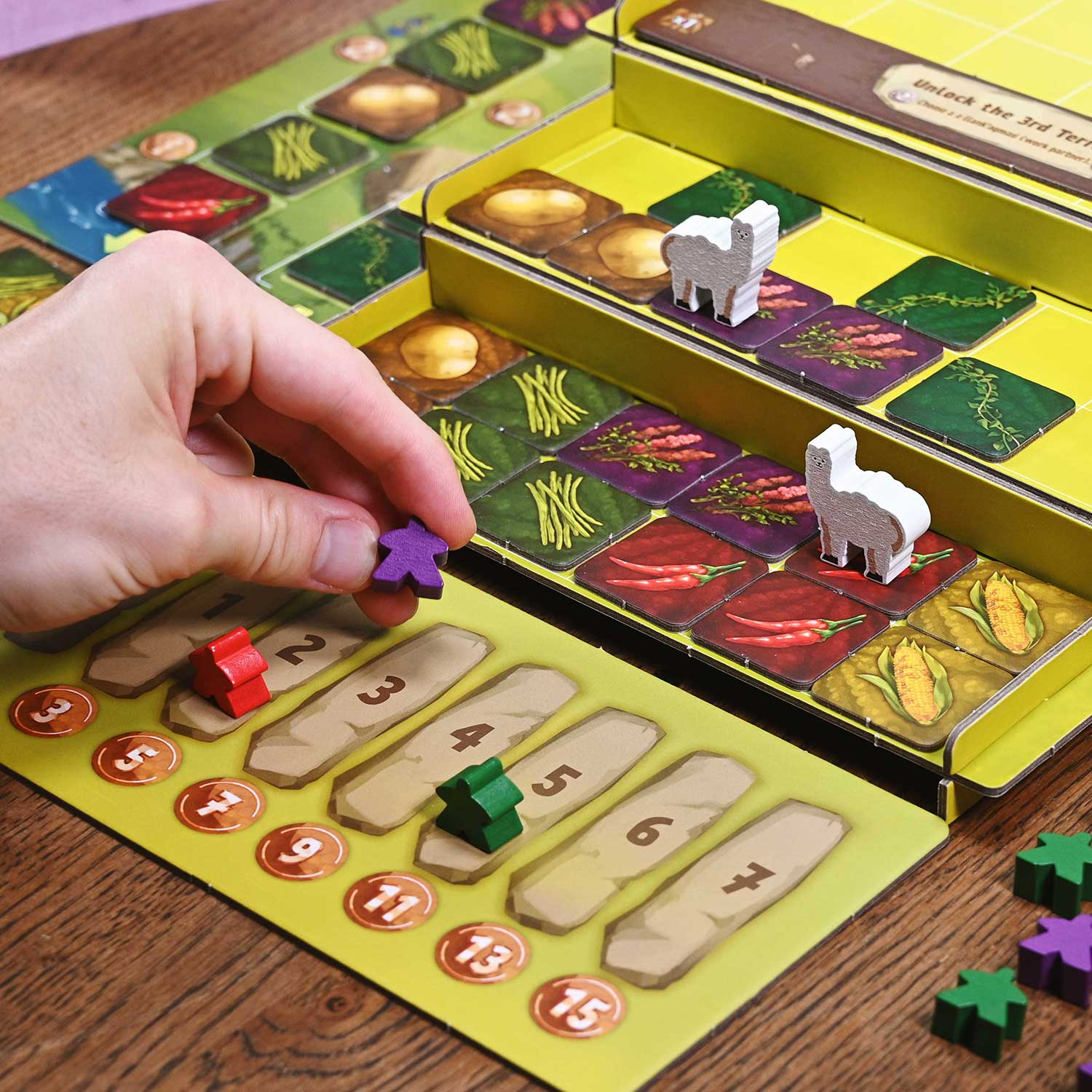 A more involved nature-focused game, this one involves terraced farming. Each player starts as a farmer specializing in one crop. On your turn, you can purchase seeds, plant crops, develop new technologies to learn to plant others, harvest crops or hire specialists. Planting seeds makes your harvesting more