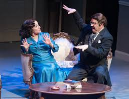 — Suffice it to say that the melodrama, locked-room murder mystery, and radio drama cliches are embraced, but playwright Dixon doesn’t seem to care much for logic or motivational consistency. Carrie, for instance, gets an “I want” song early and sporadically seems interested in solving the mystery that emerges, but as often she just wants to get out of the house. The killer’s plan relies on some dumb luck. Yes, mysteries sometimes stretch credibility, anything-for-a-laugh can be fun, and melodramas are, well, melodramatic. But, ideally, an anchoring sensibility keeps all of those elements working together rather than feeling haphazard. There’s also an occassional fourth-wall breaking moment but, like the characters’ actions, there’s little rhyme or reason to these choices.